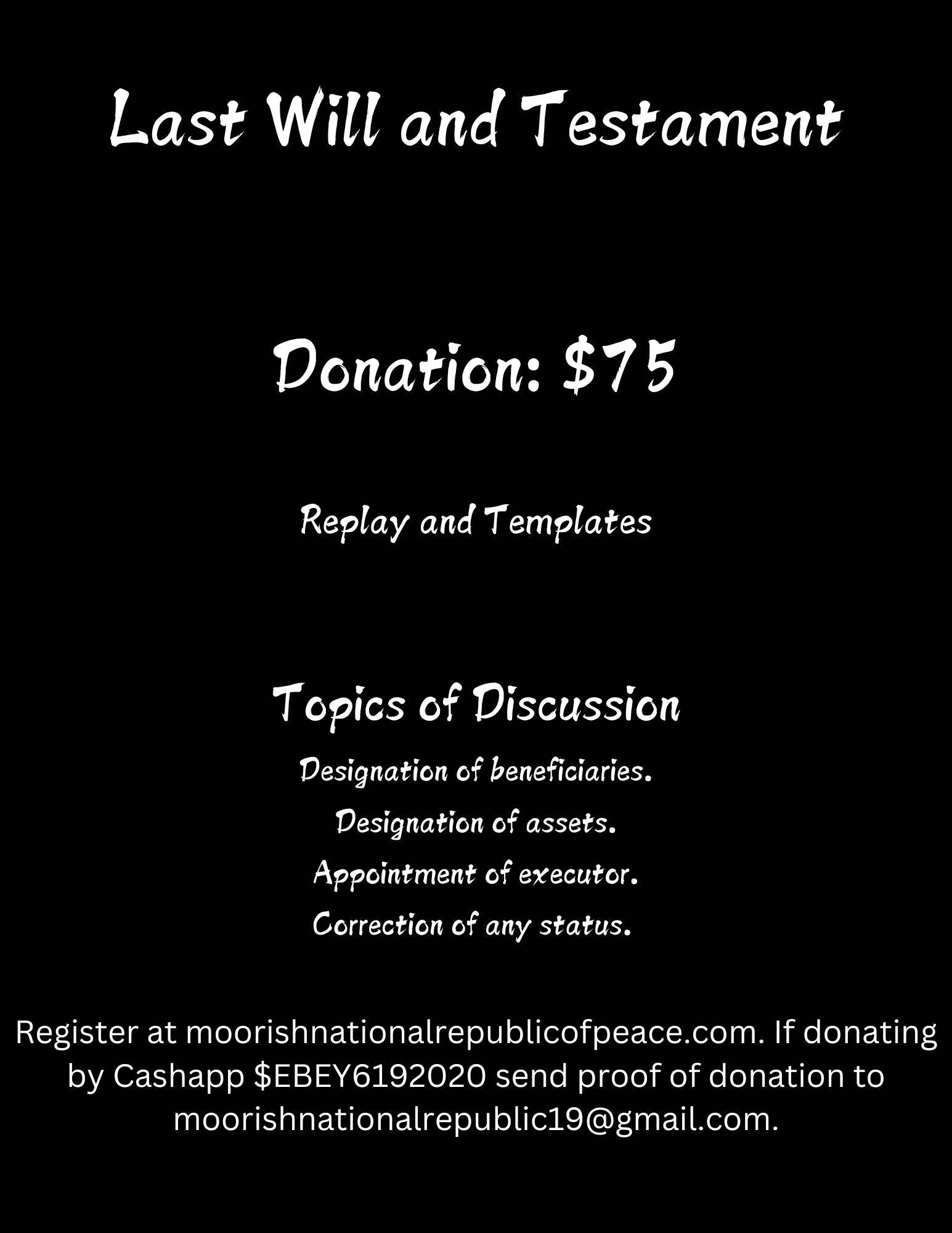 Last Will and Testament 8/24/24 Replay and Templates