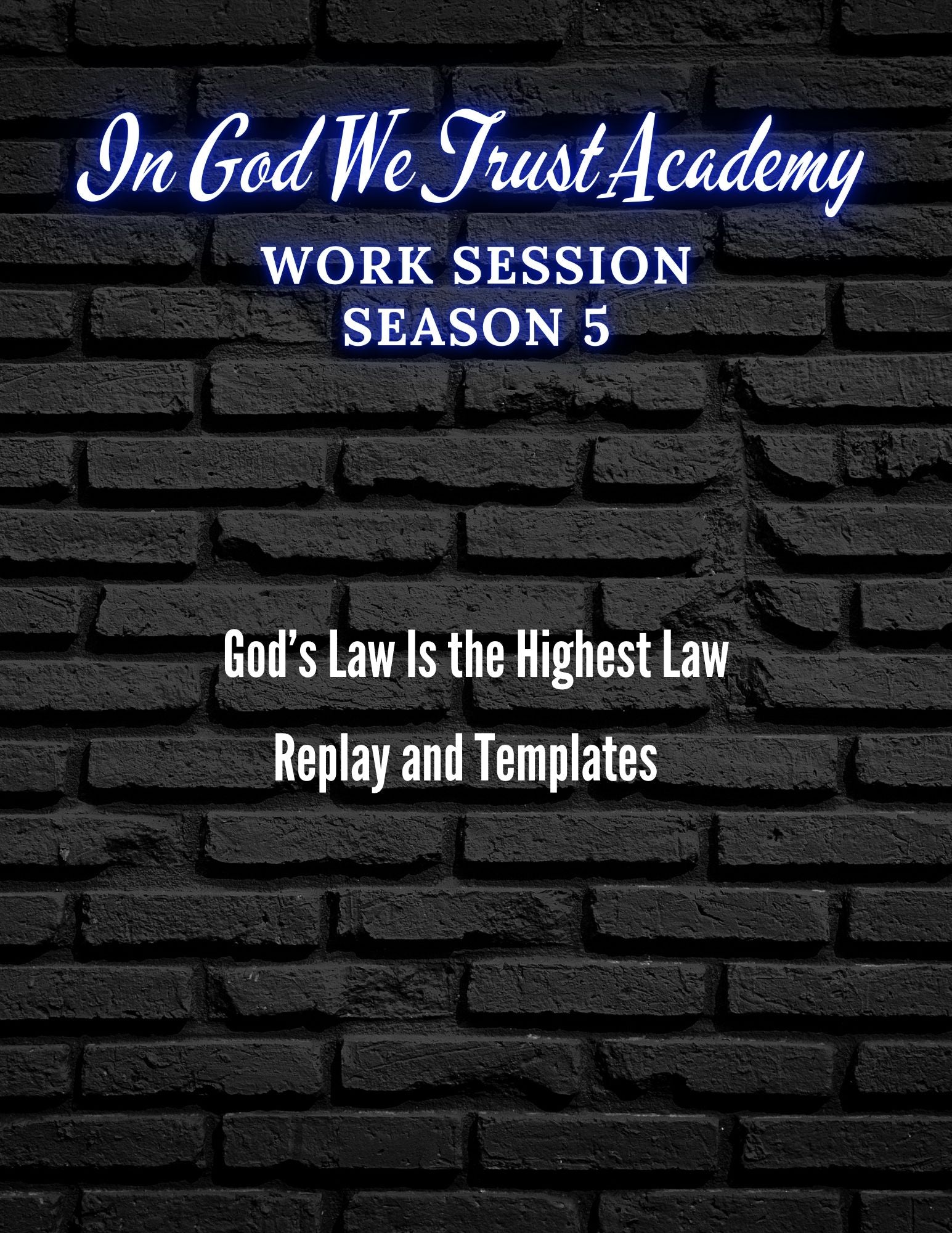 Work Session Season 5 God's Law Is the Highest Law 11/13/24 Replay and Templates (Materials will be emailed within 72 hours)