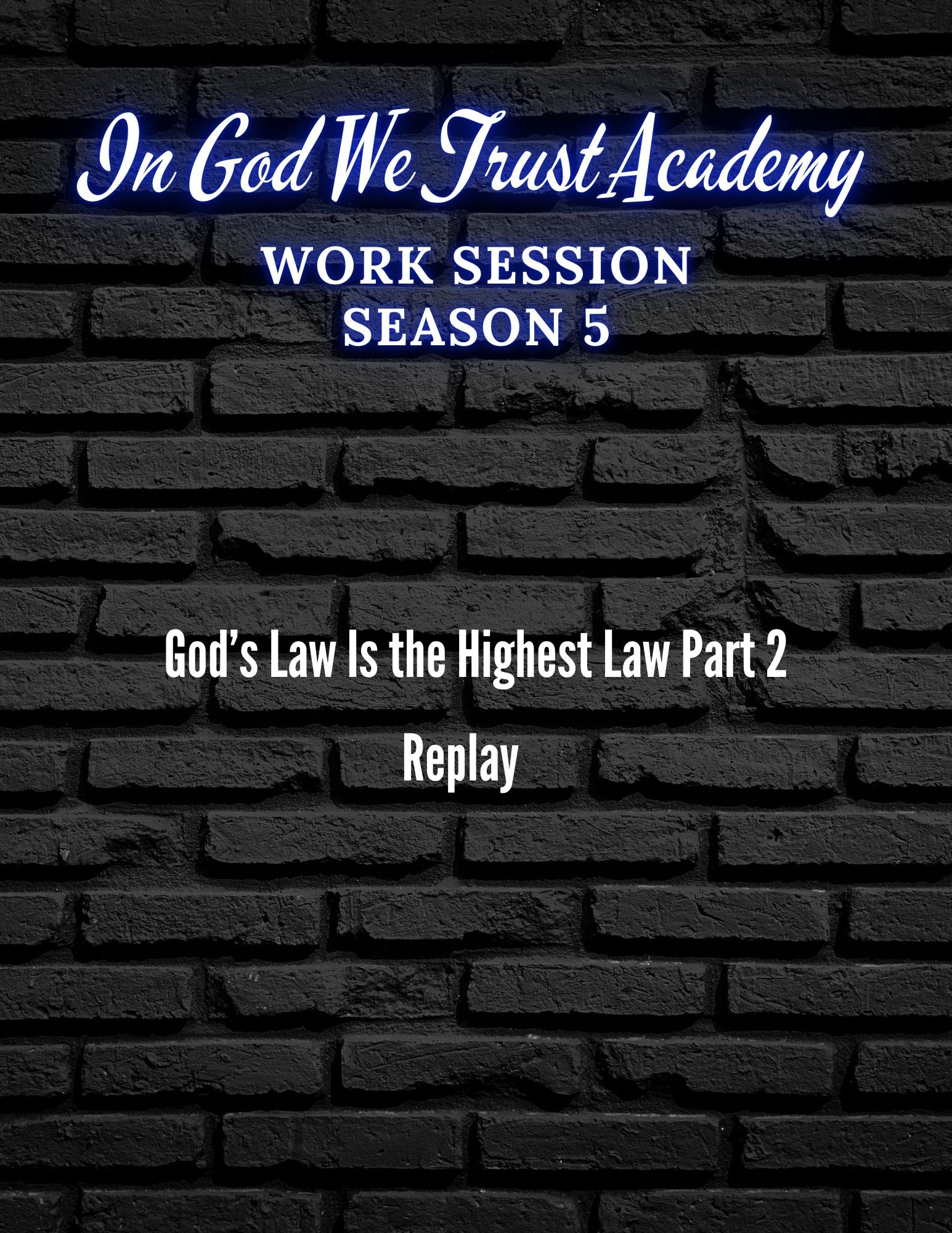 Work Session Season 5 God's Law Is the Highest Law Part 2 11/18/24 Replay (Materials will be emailed within 72 hours)