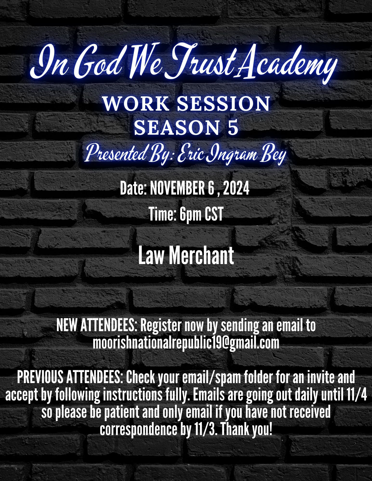 Work Session Season 5 Law Merchant 11/6/24 Replay and Templates (Materials will be emailed within 72 hours)